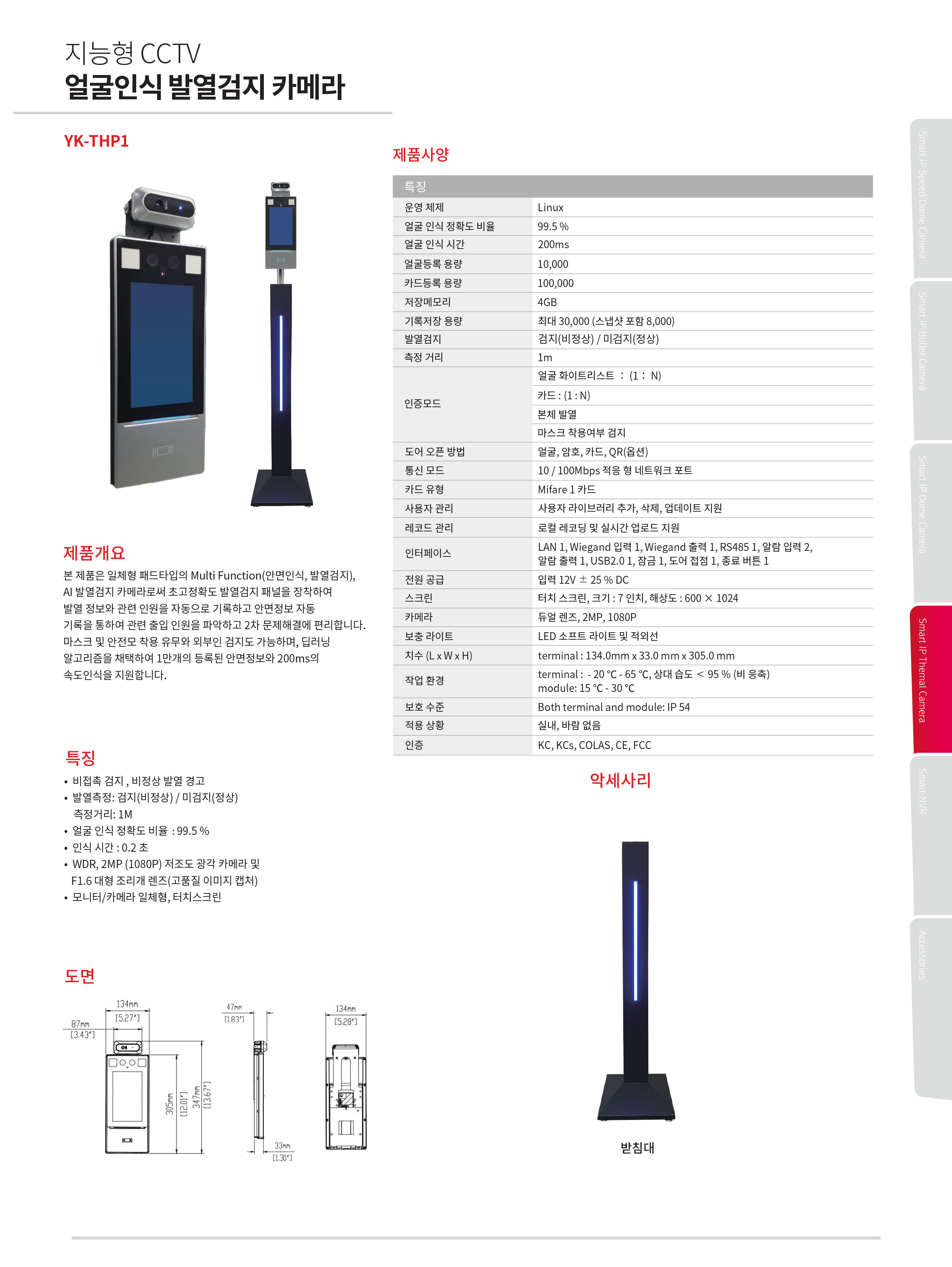 얼굴인식 발열감지 카메라 YK-THP1
